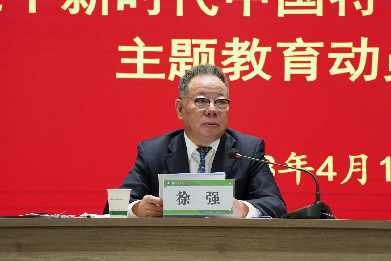 徐强传达中央和省委有关精神,他指出,在全党深入开展学习贯彻习近平新时代中国特色社会主义思想主题教育,是党中央为全面贯彻党的二十大精神,动员全党同志为完成党的中心任务而团结奋斗所作出的重大部署,对统一全党思想,解决党内存在的突出问题,保持党同人民群众血肉联系,推动党和国家事业发展影响深远。