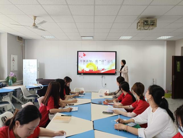 为贯彻习近平新时代中国特色社会主义思想和党的二十大精神,弘扬创新精神,进一步提高党小组成员的综合素质和政治理论水平,探索学习新思路、新方法,外国语学院学生党支部第二党小组联合教工二支部,于5月16日407教室开展五月第二次政治理论学习暨“建党精神金句”红色翻译。