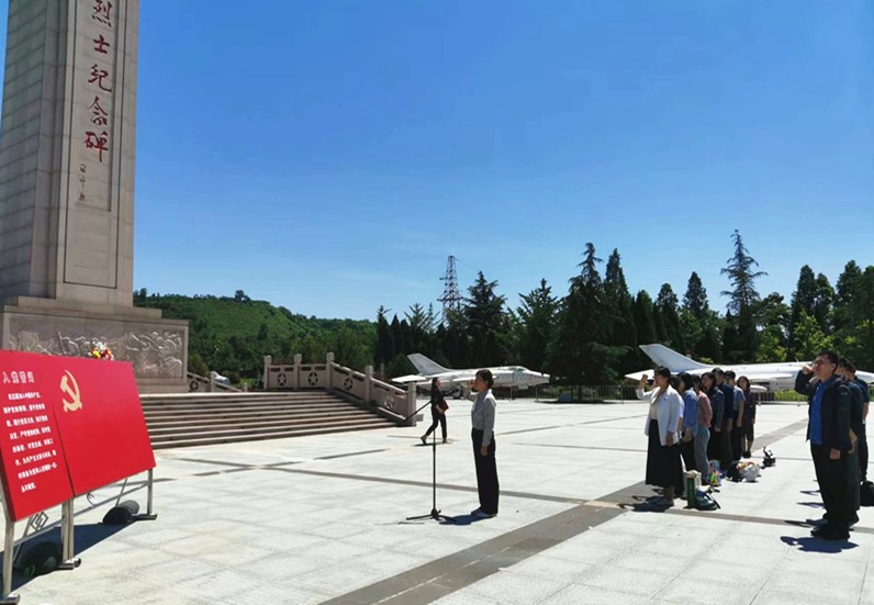 全体党员面对扶眉战役烈士纪念碑集体默哀,向纪念碑敬献花篮。在熊冬梅的领誓下,全体党员重温入党誓词,表达了对烈士的深切哀思和崇高敬意。