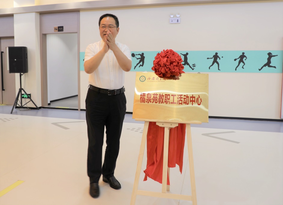 随后,党委书记刘岭为“橘泉苑教职工活动中心”揭牌,宣布活动中心正式启用。