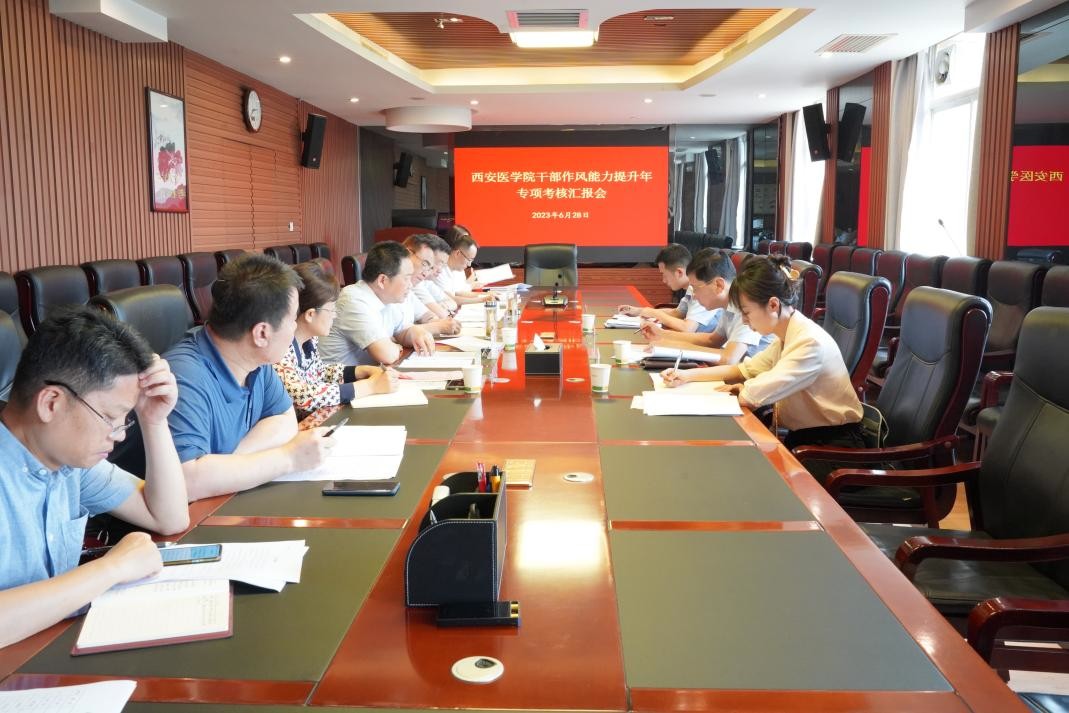 汇报会上,刘岭介绍了学校基本情况及干部作风能力提升年活动开展情况。刘岭指出,干部作风能力提升年活动启动以来,校党委高度重视,对相关工作做出全面安排部署,全体校领导传阅学习文件精神、开展校党委理论学习中心组集体学习,深入学习贯彻落实省委指示要求。学校制定了《西安医学院干部作风能力提升年实施方案》,成立工作专班,明确“八个方面”的重点任务,具体组织、协调、开展全校干部作风能力提升年活动。各级党组织深入贯彻落实校党委关于干部作风能力提升年活动的决策、部署、要求,扎实开展相关工作。学校坚持将开展干部作风能力提升年活动融入事业发展,以“强化政治忠诚、树牢宗旨意识、促进本领提升、激发担当精神、推进高质量发展”为工作目标,紧密结合学校“七个一”工程总体部署和第二次党代会确立的“八项行动”具体安排,紧扣学校2023年度学校党政工作要点、纪检监察工作要点和广大师生急难愁盼问题,引导干部以良好作风担当作为,在真抓实干中检验作风能力提升成效,助推学校高质量发展提质增效。