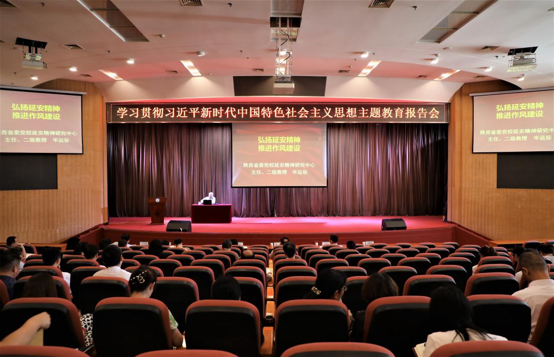7月5日,按照学校主题教育工作安排,我校在未央校区学术报告厅举行学习贯彻习近平新时代中国特色社会主义思想主题教育报告会。中共陕西省委党校延安精神研究中心主任、二级教授、陕西省委党校延安精神研究团队首席专家、陕西省党史学习教育宣讲团成员、七一讲话宣讲团成员、十九届六中全会宣讲团成员毕远佞作题为《弘扬延安精神 推进作风建设》的主题报告。党委副书记、副校长巩守平主持报告会,全体在校领导出席。
