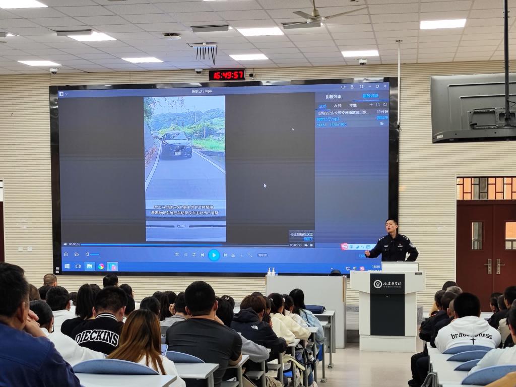 张鹏辉警官讲到:“镜头可以回放,生命不能重来!”呼吁广大师生要将交通安全行为意识做到真正的入脑入心,养成良好交通安全行为习惯,杜绝各类交通事故的发生。