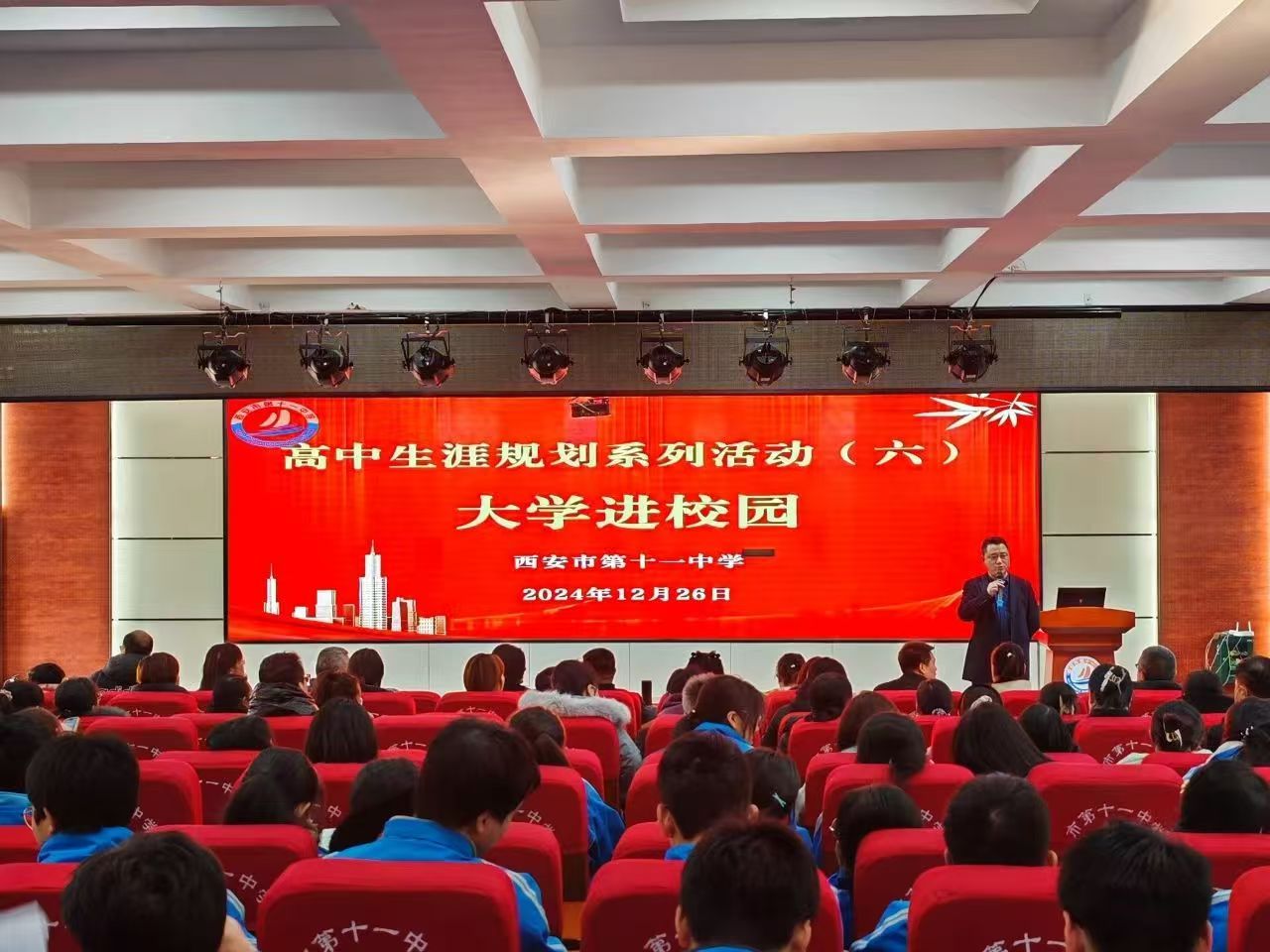 为积极应对高考改革新形势,进一步加强高校与高中的交流合作,宣传我校专业培养和就业优势等情况,帮助高中学子深入了解大学专业设置及各专业对高中选科的具体要求,12月26日下午,我校招生办走进市第十一中学,开展题为“高校助力明方向·理性选科筑未来”的招生宣传活动。第十一中学高一年级全体师生及部分家长代表参加了宣讲会。