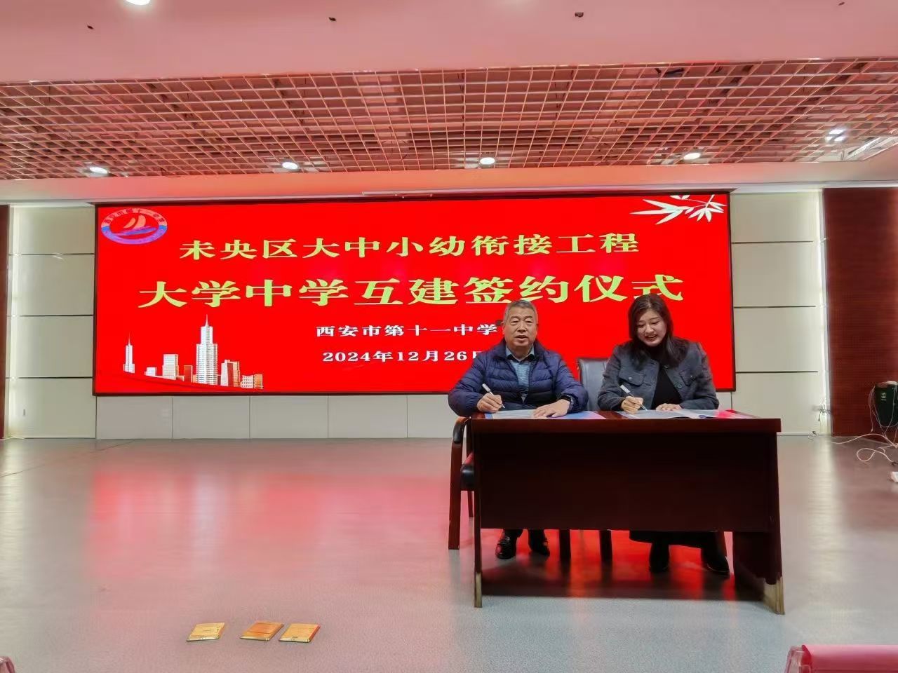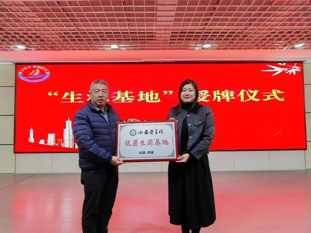 我校向市第十一中学授予“优质生源基地”牌匾,并与校方签订“未央区大中小幼衔接工程——大学中学互建协议”。希望双方能够持续加强交流合作,携手未来,共同为我省医药卫生人才培养做出新的更大贡献。